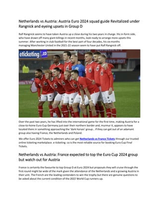 - Information on where to watch the upcoming match between Germany and Netherlands may be included in the blog post.